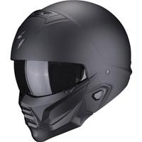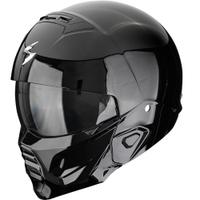 Scorpion-motorcykelhjelmen kombinerer et holdbart polykarbonatmateriale med et praktisk aftageligt hagestykke, der gør det muligt at bruge den som en integreret eller åben hjelm.