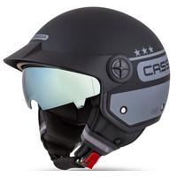 Cassida Handy Plus motorcykelhjelm med åbent ansigt giver store tilpasningsmuligheder. Du kan kombinere lang og kort plexi, kort visir, og takket være beslagene kan du ændre modellen uden visir og plexi.
