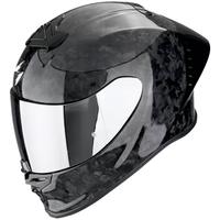 Scorpion-motorcykelhjelmen er lavet af ULTRA TCT-kulfibermateriale. Dette materiale er ekstremt let og samtidig meget holdbart. Ved sammenstød giver det mulighed for progressiv deformation af skelettet for effektiv energiabsorption. Designet hjælper med at reducere de kræfter, der overføres til rytterens hoved. Kulstofskallen giver et højt beskyttelsesniveau, samtidig med at den har en lav vægt.